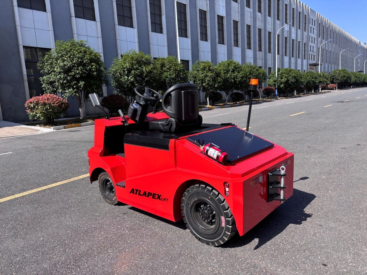 The tractor weighs 1,150 kg including the battery and operates at a noise level of ≤70 dB(A) for a comfortable working environment. Equipped with a latch‑type traction bolt, ergonomic seating, and reliable safety performance, the ATLAPEX QDD60 combines ease of operation, flexible steering, and durable construction to provide a professional and efficient solution for 6‑ton heavy‑duty towing applications.
